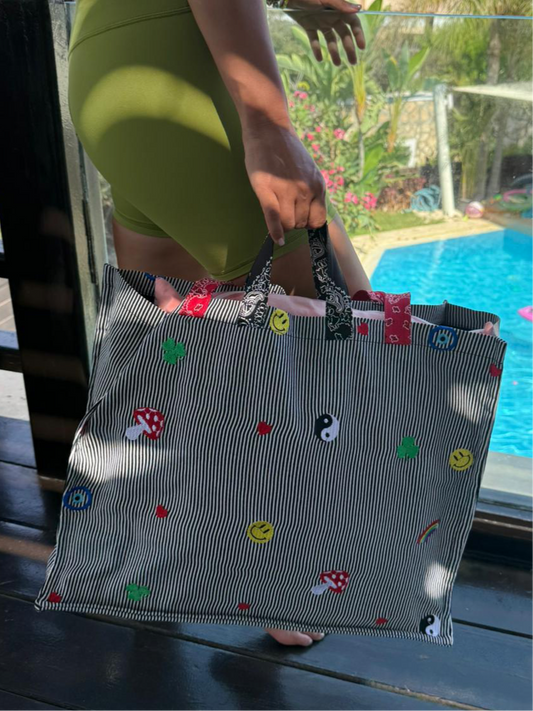 Maxi Tote in Striped “Hippie-Funk” embroidery