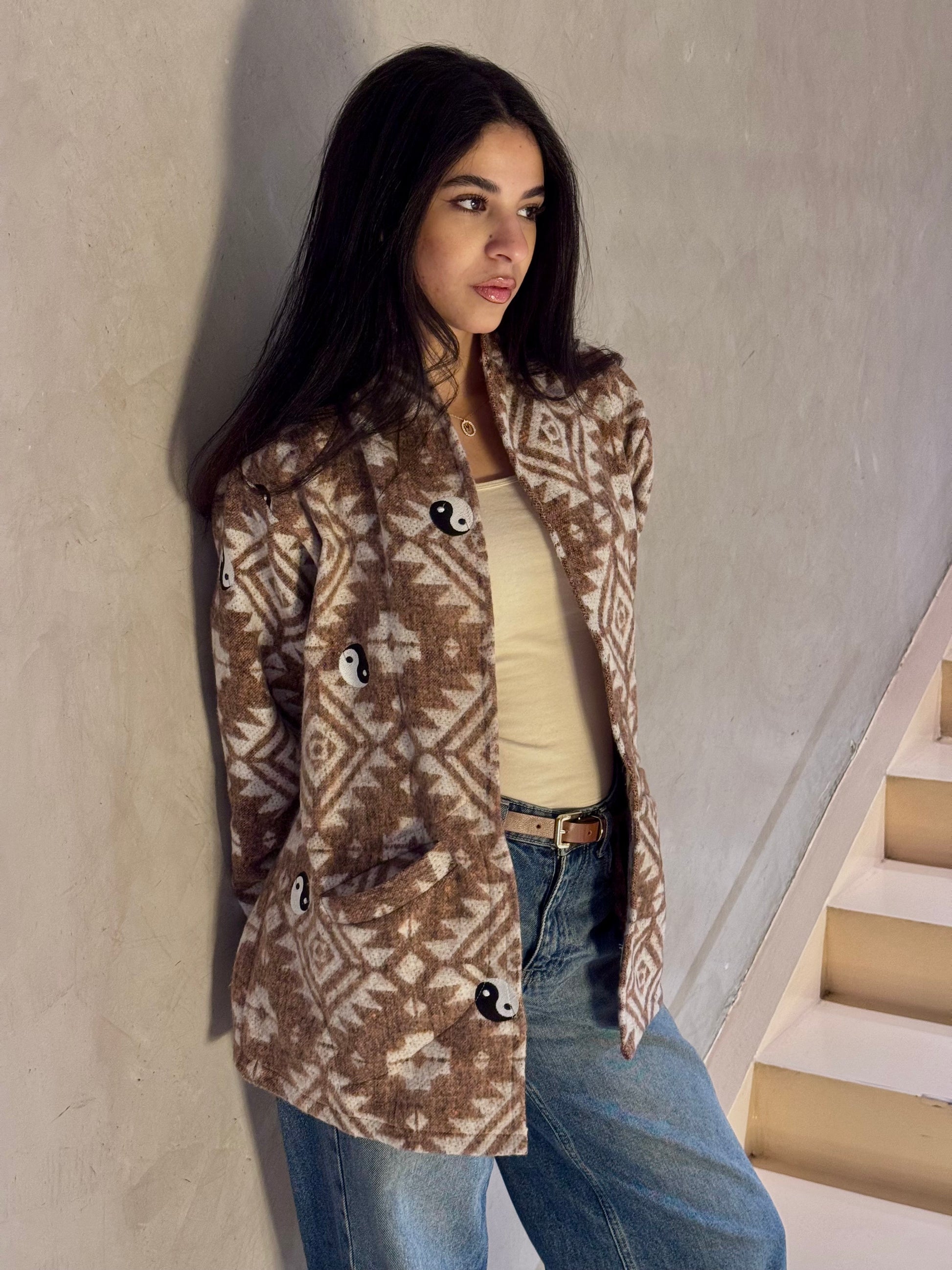 Ying-Yang Blanket Cardigan in Beige
