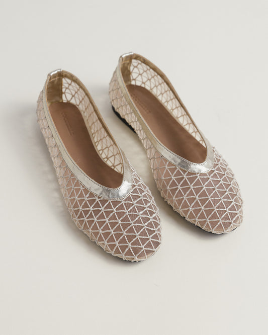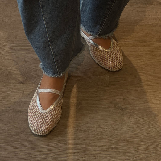 Jackie-O French-Mesh Ballerina in Silver Blanc