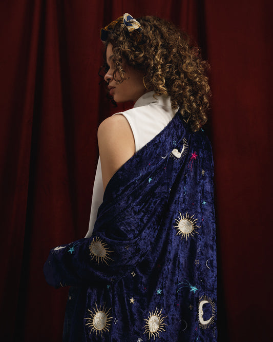 “Cosmic Love” (Sun & Moon) in Navy Velvet Kaftan ** LAST PIECE**
