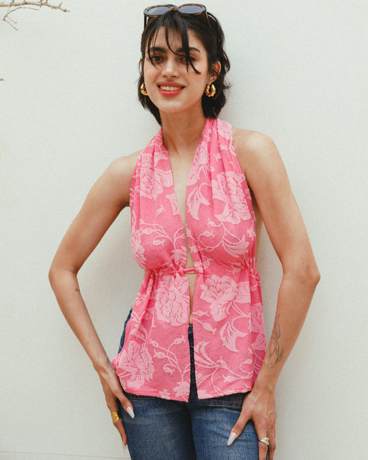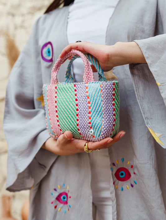 “Moon-Dust” Silver & Blush Velvet Plissé Kaftan