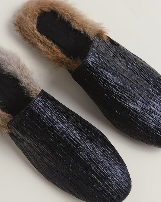 Tracy Mules in Black + Rabbit Fur