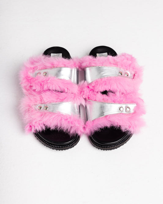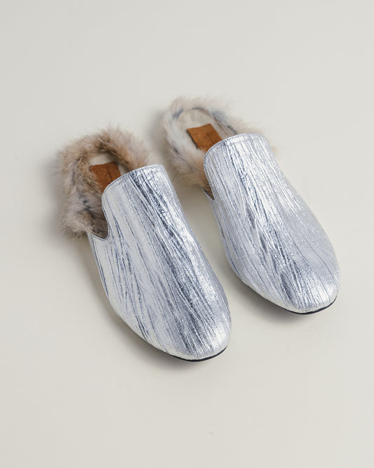Tracy Mules in Silver & Rabbit fur