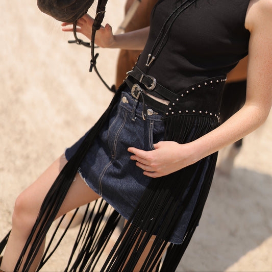 Fringe Studded Belt in Black (PREORDER)