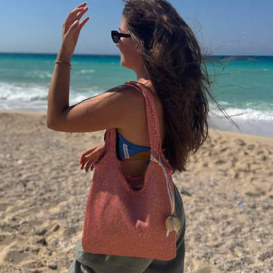 The Ivy tote bag in sequin-embleshed mesh in Peach (Final Sale)