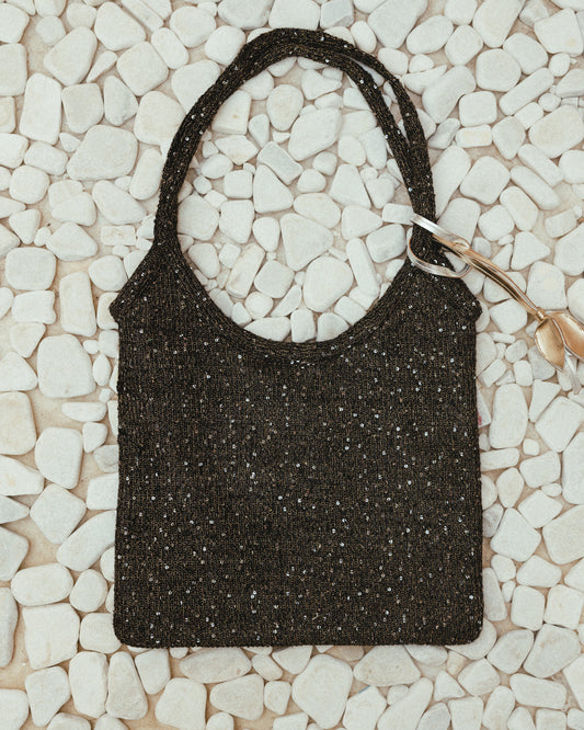 The Ivy tote bag in sequin-embleshed mesh in Black