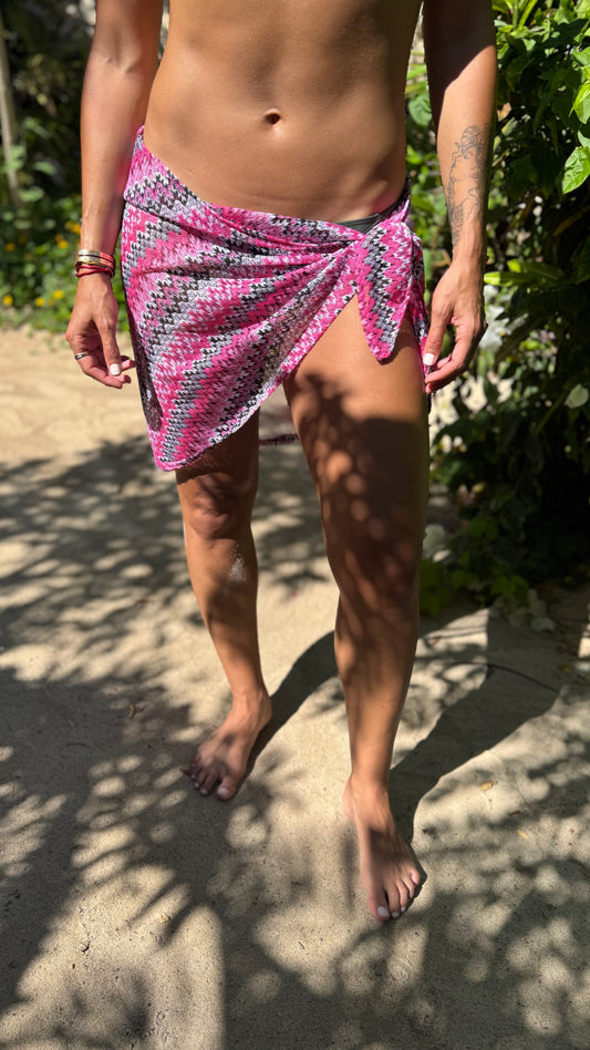 Skull & Star Crochet mini Sarong in Pink (final sale)