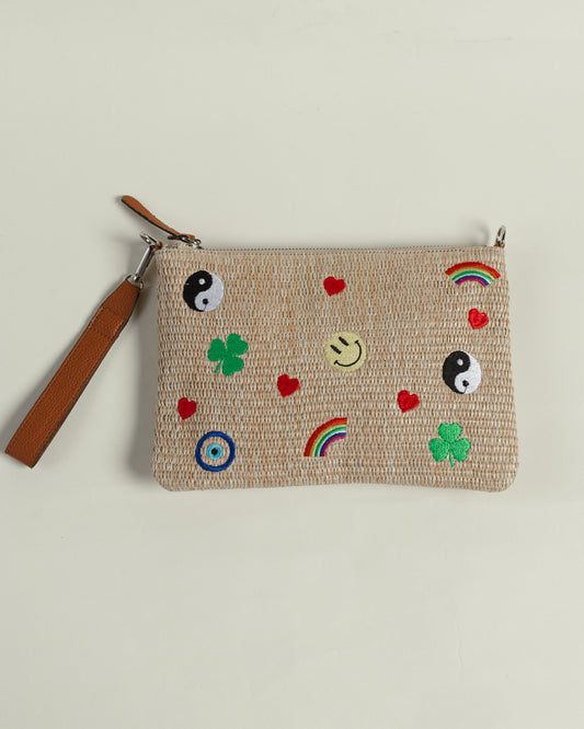 “Funk” Hippie- embroidery Raffia Pouch/cross body (comes with strap)