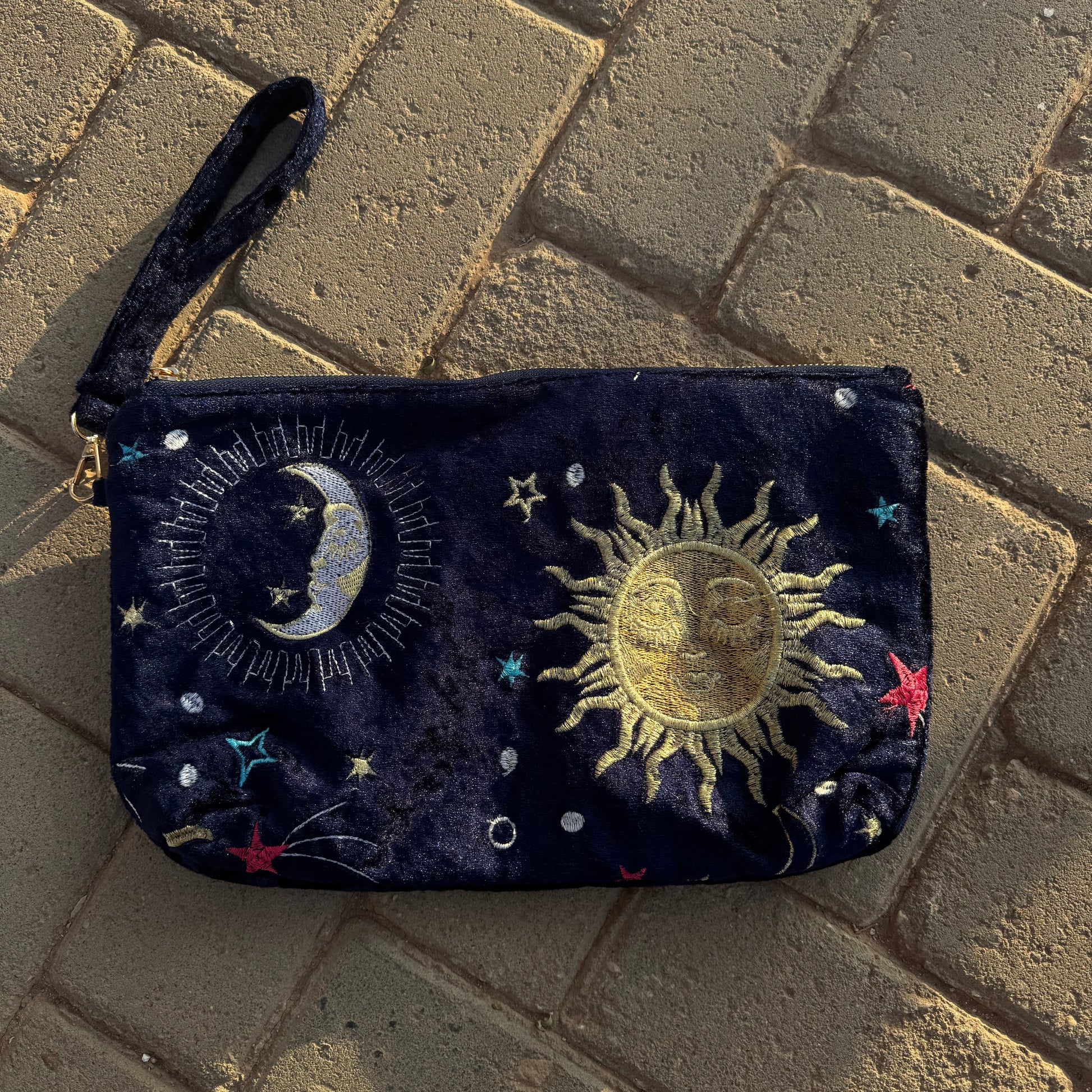 The Celestial Pouch is perfect to wear it out on its own as a simple clutch OR to gather all your little stuff inside and toss it in your tote.