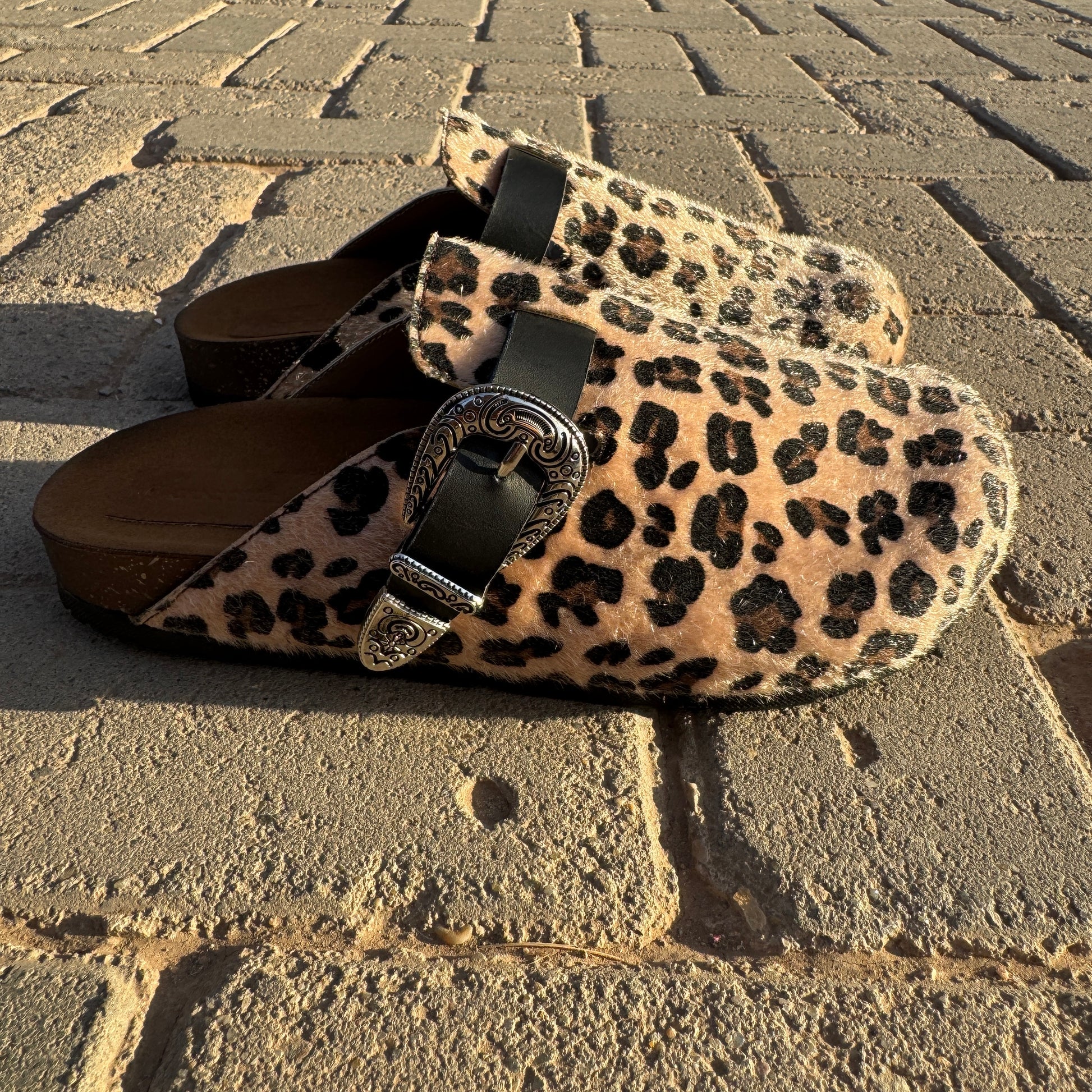 Your everyday clog accented with our Western Buckle Detail and Faux textured animal hair print.
